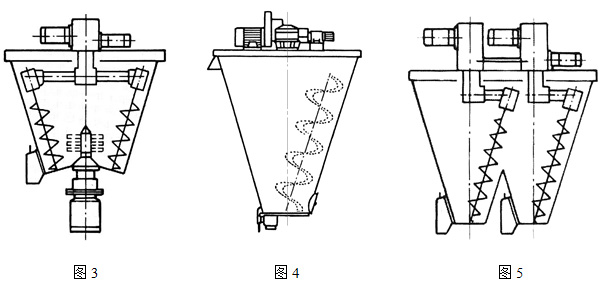 7、如圖5所示兩錐體結合成一體,為雙錐雙螺旋結構。此結構可在保持體積不變的同時,大大降低錐體的高度,適合于設備的大型化及大生產。