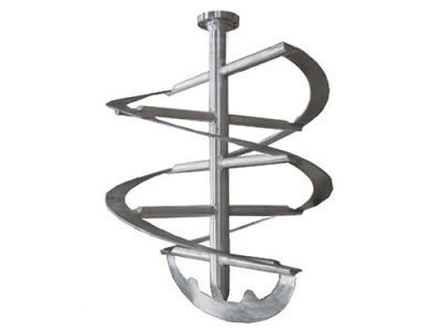 一般物料沿容器壁面螺旋上升,再向中心凹穴匯合,形成上下對流循環(huán)。同時(shí)具有較強(qiáng)的防附著效果。適用于高粘度或粉狀物料的混合、傳熱、反應(yīng)溶解操作。螺帶的形式和條數(shù)應(yīng)根據(jù)容器的幾何形狀和液層高度來確定。