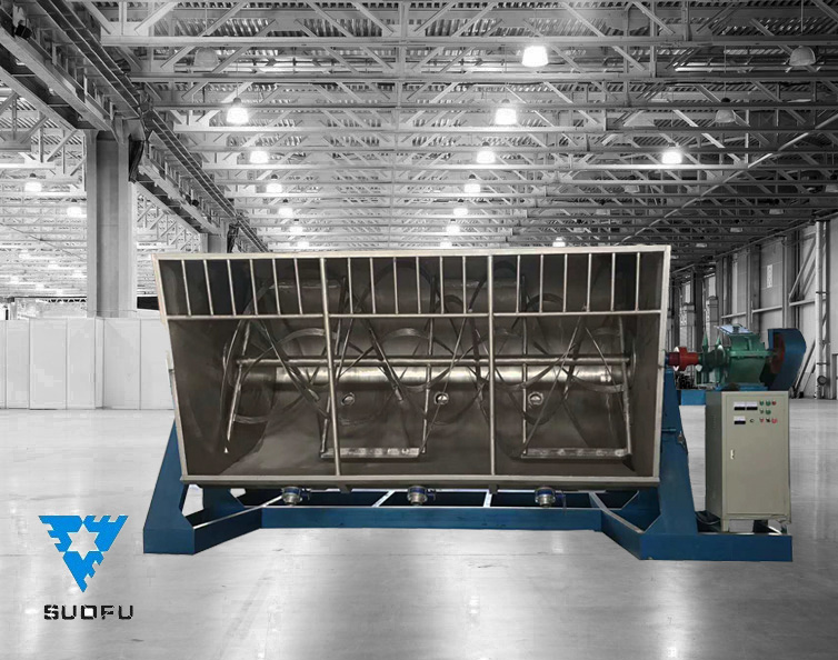 臥式螺帶混合機(jī)由U形容器、螺帶攪拌葉片和傳動(dòng)部件組成;螺帶狀葉片一般做成雙層或三層,外層螺旋將物料從兩側(cè)向中央?yún)R集,內(nèi)層螺旋將物料從中央向兩側(cè)輸送,形成對(duì)流混合。螺帶混合機(jī)對(duì)于粘性或有凝聚性的粉粒體的混合以及粉粒體中添加液體及糊狀物料的混合有良好的效果,筒蓋可做成全開(kāi)式門(mén),以便于對(duì)設(shè)備進(jìn)行清洗更換產(chǎn)品。