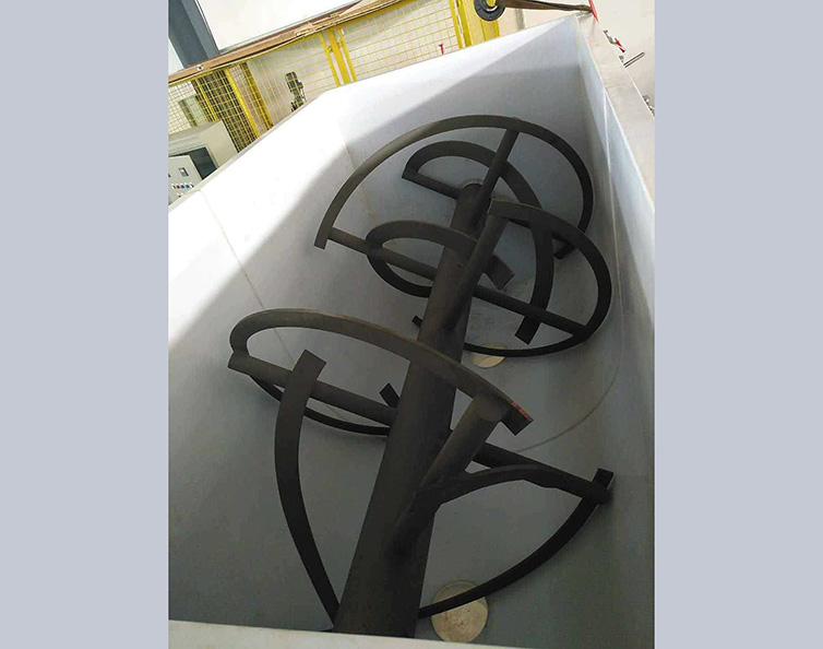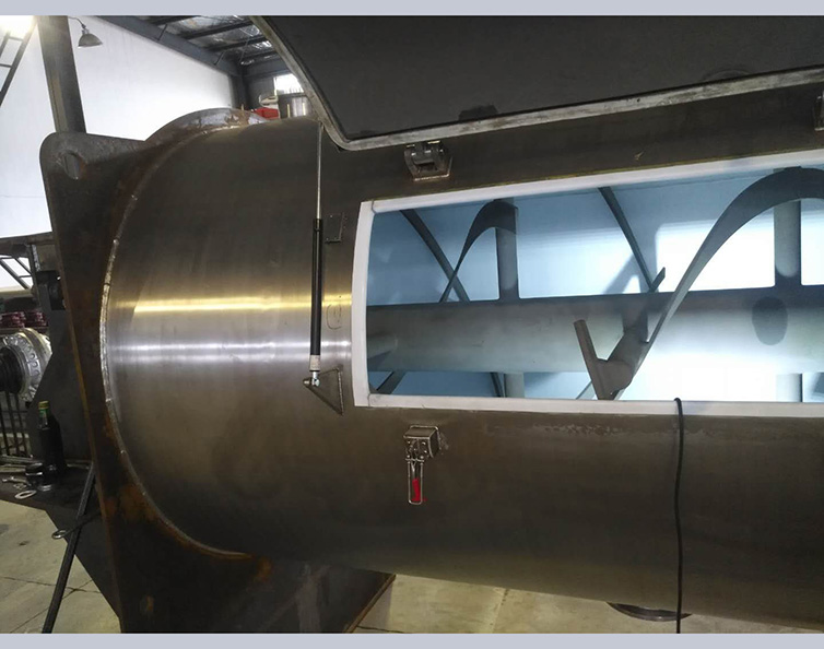 5、 正反旋轉(zhuǎn)螺帶安裝于同一水平軸上,形成一個(gè)低動(dòng)力高效的混合環(huán)境。