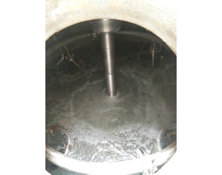 5. 利用下層寬葉仿曲面軸流推進(jìn)槳大排量的循環(huán),將剛剛噴射出來(lái)的氣體,牢牢的壓制在釜體底部,同時(shí)也將釜底催化劑固相物料楊起,達(dá)到完全懸浮的狀態(tài);