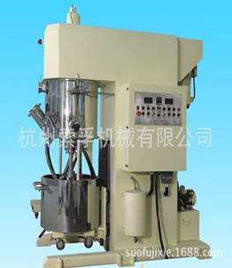 行星攪拌機是一種新型高效無死點混合高效、多功能、強制性混合、分散設備。其結構較為復雜,該機充分的結合了行星攪拌機和強力分散機的特點,將這兩種設備的優(yōu)點融合于一體,既有高速分散功能又有低速攪拌功能;相比行星攪拌機低速攪拌槳的公轉有自轉,它還增加了一組高速分散軸,上面配置了一個分散盤,運作時自轉的同時又公轉,其速度可變頻調速。
