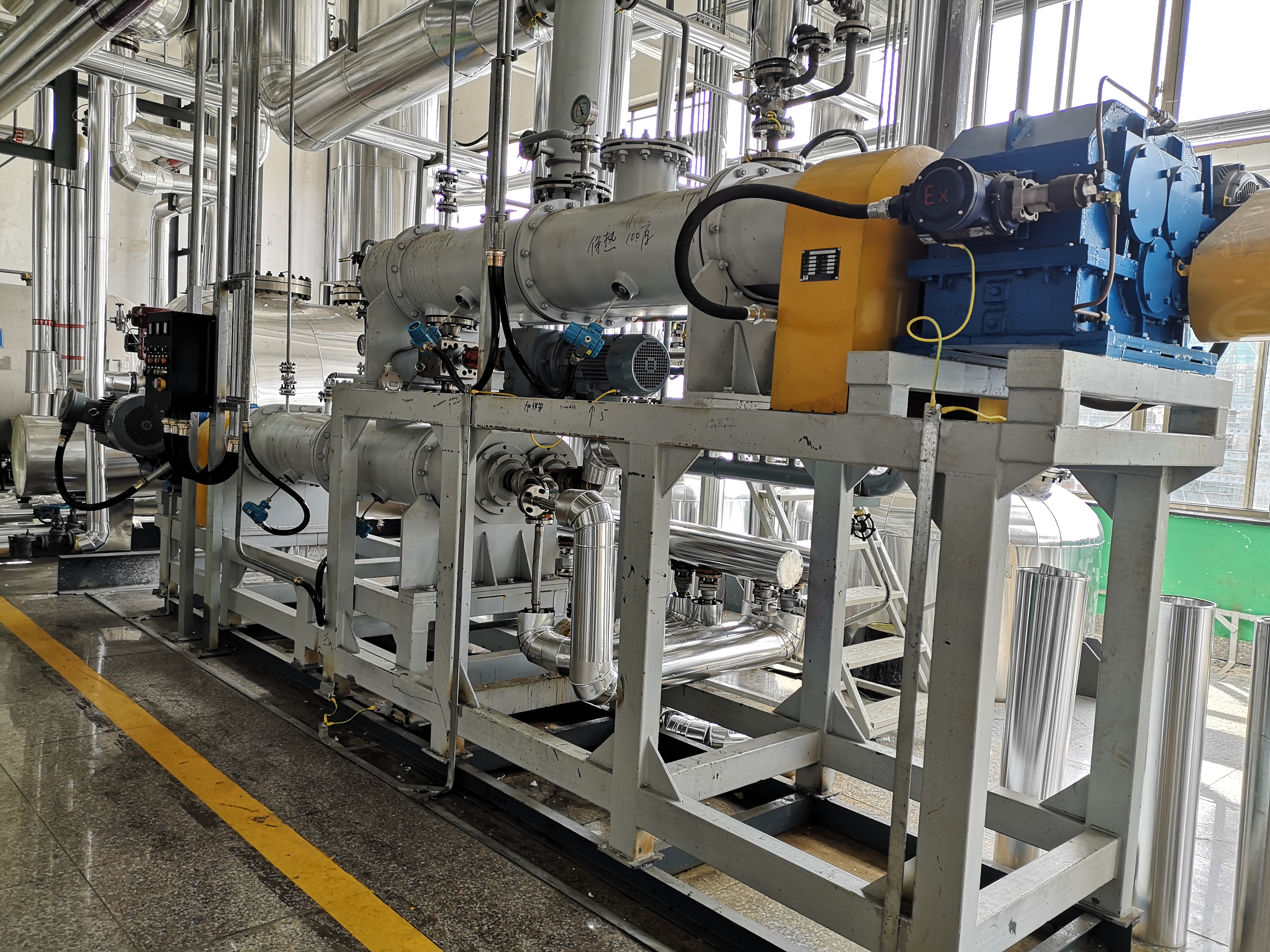 為了適應(yīng)在真空狀態(tài)下的操作,專門安裝了適用于高粘度物料的齒輪泵式出料器。該出料器直接安裝在主設(shè)備上,消除了設(shè)備內(nèi)的死角。齒輪泵式出料器在稍微超負(fù)荷的條件下工作,以保證物料能連續(xù)地排出,并輸入下一工段進(jìn)行包裝。
