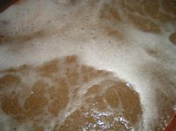 | 現(xiàn)場(chǎng)自吸式攪拌機(jī)氣泡情況 |
